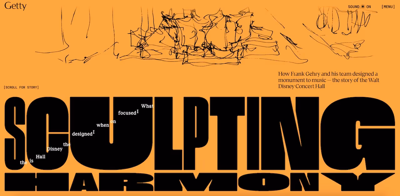 Why we love this landing page: The archive feels meticulously curated and beautifully presented, offering a deep dive into Gehry’s work with structure, clarity, and a scholarly tone - with a wonderful organ symphony playing as you scroll.