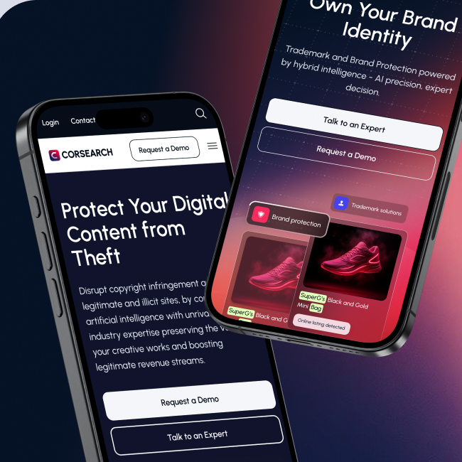 For the first time across its acquired entities, Corsearch has a single visual and product language. The design system spans marketing and product, reducing design debt and giving both teams a shared foundation to build from. The new marketing website shipped live as a direct project output. And the product UX work made the platform more legible for the IP professionals and legal teams who use it every day.