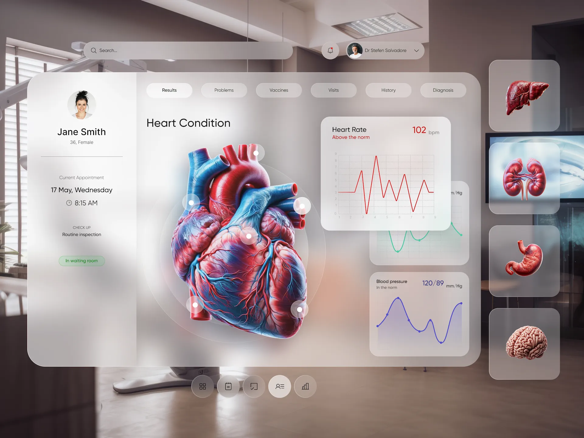 We designed an interactive AR dashboard that delivers real-time health insights, personalized goals, and progress tracking in a dynamic, engaging format.